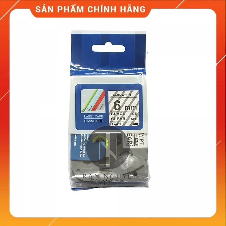 Nhãn In Brother Tz2-111 - Đen nền trong 6mm x 8m - Hàng nhập khẩu