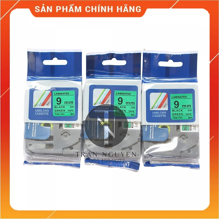 [Combo 3 hộp] Nhãn In Brother Tz2-721 - Đen nền xanh lá 9mm x 8m - Hàng nhập khẩu