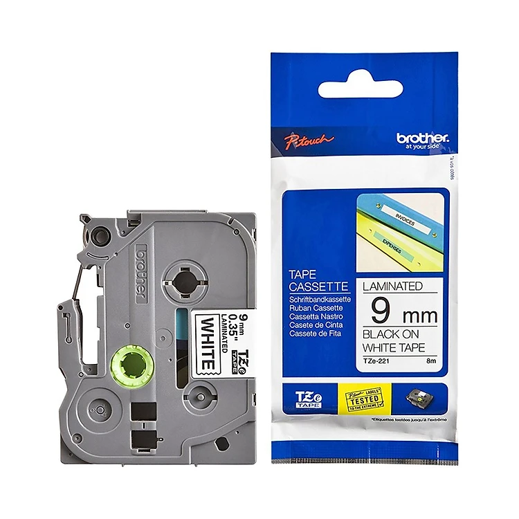 Nhãn in Brother TZe-221 chữ đen trên nền trắng (9mm) - Hàng chính hãng