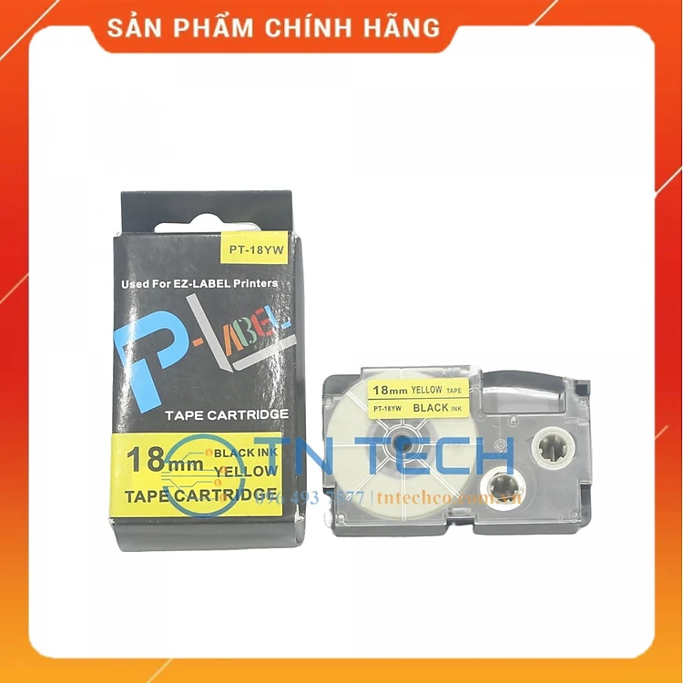 Nhãn in CASIO PT-18YW - Chữ đen nền vàng 18MM x 8M - Dùng cho máy in nhãn CASIO [Hàng nhập khẩu]