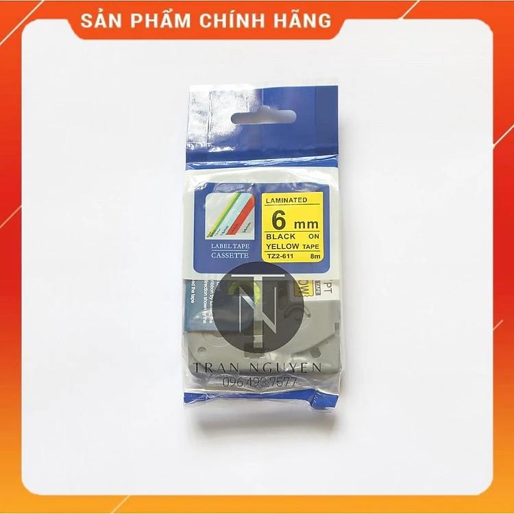Nhãn In đa lớp Tz2 -611- Đen nền vàng 6mm x 8m - Hàng nhập khẩu