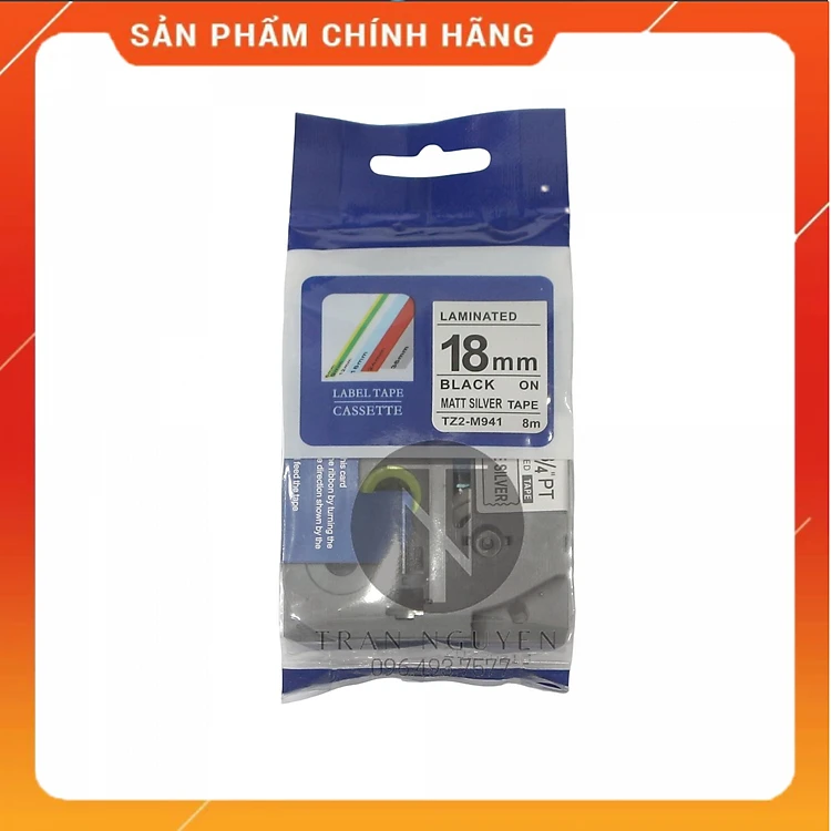 Nhãn In đa lớp Tz2-m941 - Đen nền bạc 18mm x 8m - Hàng nhập khẩu