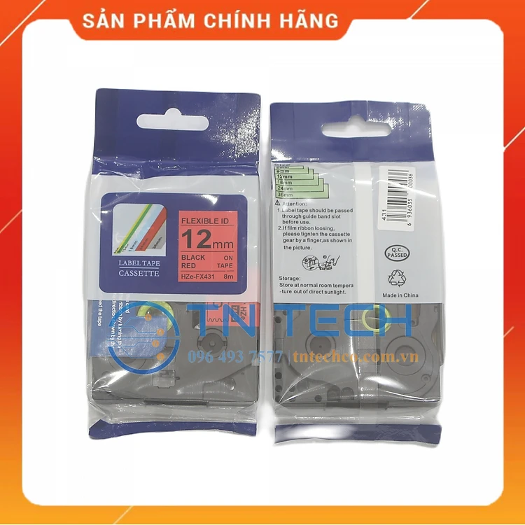 Nhãn In HZE-FX431 - Đen nền đỏ 12mm x 8m - Dùng cho máy in BROTHER - AIMO - PUTY [Hàng nhập khẩu]
