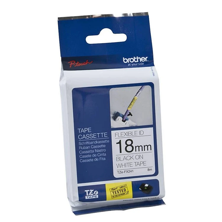 Nhãn in siêu dẻo TZe-FX241, dán nhãn cáp mạng, điện, 18mm x 8m, chữ đen nền trắng - Hàng Chính Hãng