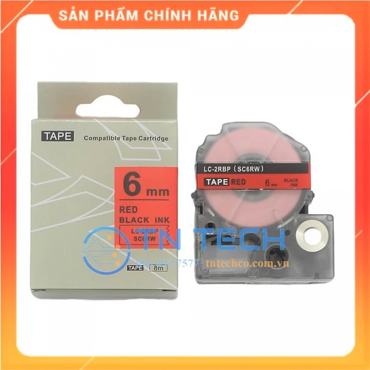 Nhãn in TEPRA - EPSON LC-2RBP (SC6RW) – Chữ đen nền đỏ 6MM X 8M  - Dùng cho máy in nhãn TEPRA - EPSON [Hàng nhập khẩu]