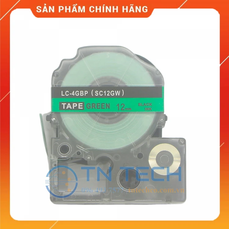 NHÃN IN TEPRA-EPSON LC-4GBP (SC12GW) – CHỮ ĐEN NỀN LÁ 12MM X 8M [Hàng nhập khẩu]