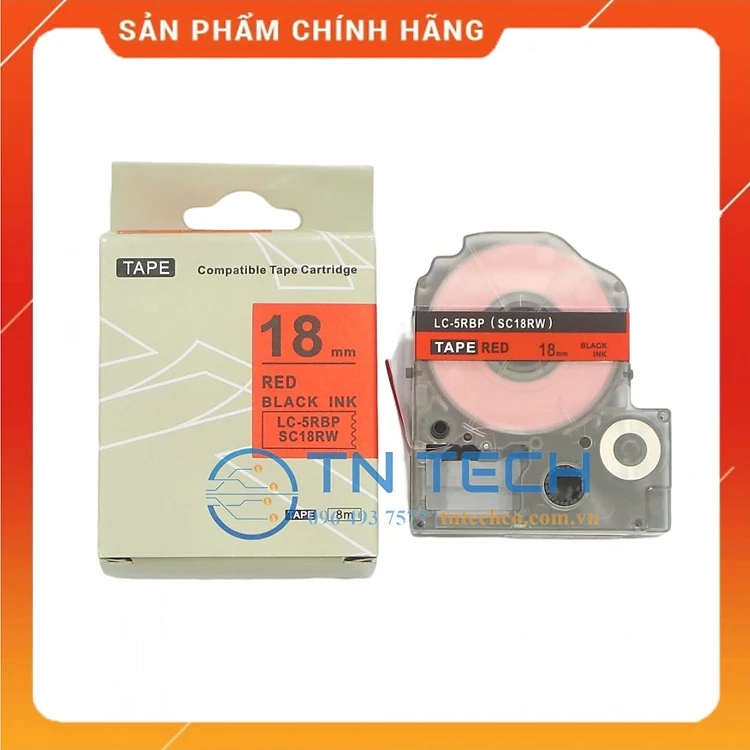 Nhãn in TEPRA - EPSON LC-5RBP (SC18RW) – Chữ đen nền đỏ 18MM X 8M - Dùng cho máy in nhãn TEPRA - EPSON [Hàng nhập khẩu]