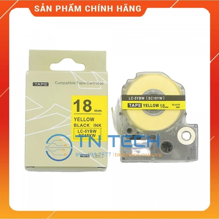 Nhãn in TEPRA - EPSON LC-5YBW (SC18YW) – Chữ đen nền vàng 18MM X 8M - Dùng cho máy in nhãn TEPRA - EPSON [Hàng nhập khẩu]