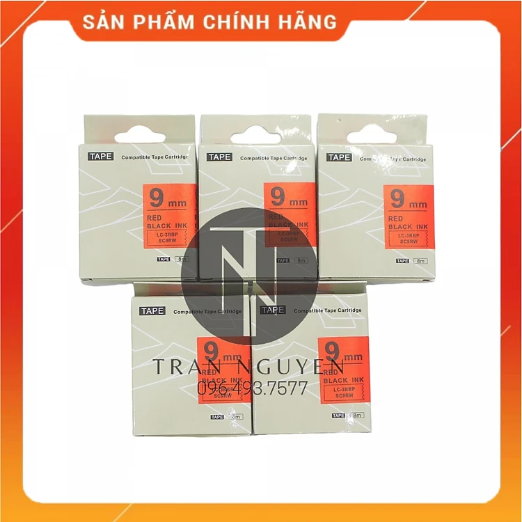 [Combo 5 cuộn] Nhãn in Tepra SC9RW (LC-3RBP) - Chữ đen nền đỏ 9mm x 8m - Hàng nhập khẩu