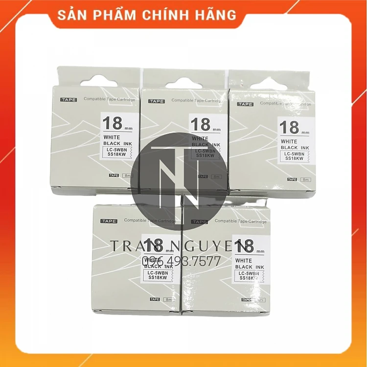 [Combo 5 cuộn] Nhãn in Tepra SS18KW (LC-18WBN) - Chữ đen nền trắng 18mm x 8m - Hàng nhập khẩu