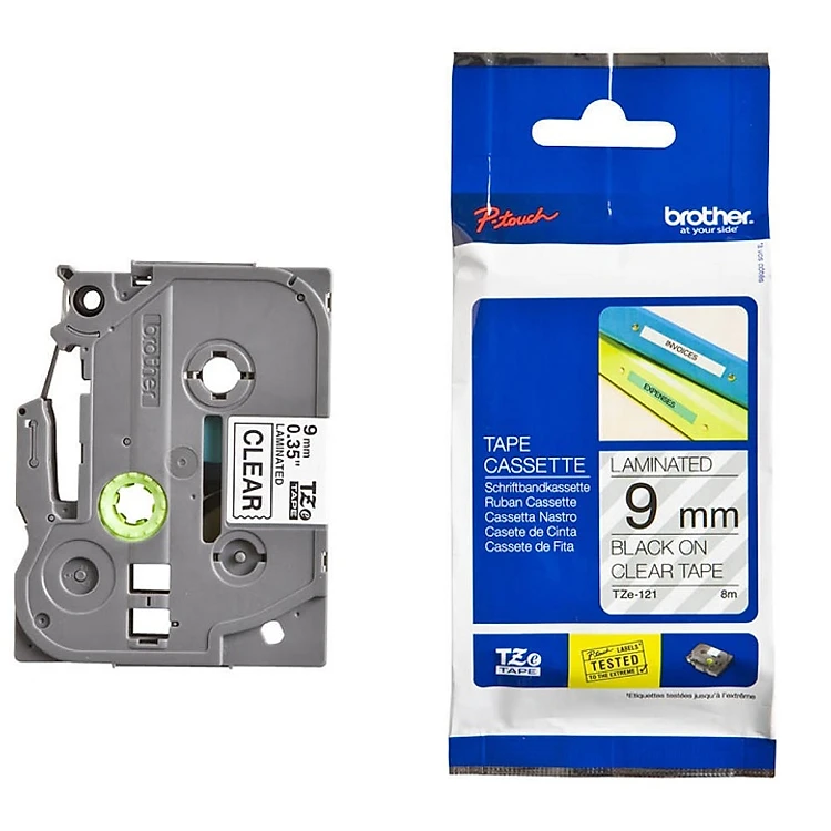 Nhãn In Tiêu Chuẩn TZE Brother Tze-121 Chữ đen trên nền trong 9mm - Chính hãng