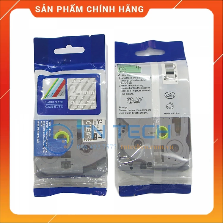 Nhãn In Tz2-155 - Trắng nền trong 24mm x 8m - Dùng cho máy in BROTHER - AIMO - PUTY [Hàng nhập khẩu]