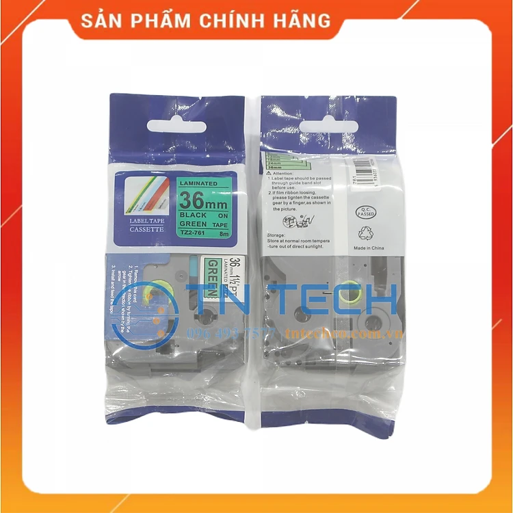 Nhãn In Tz2-761 - Đen nền xanh lá 36mm x 8m - Dùng cho máy in BROTHER - AIMO - PUTY [Hàng nhập khẩu]