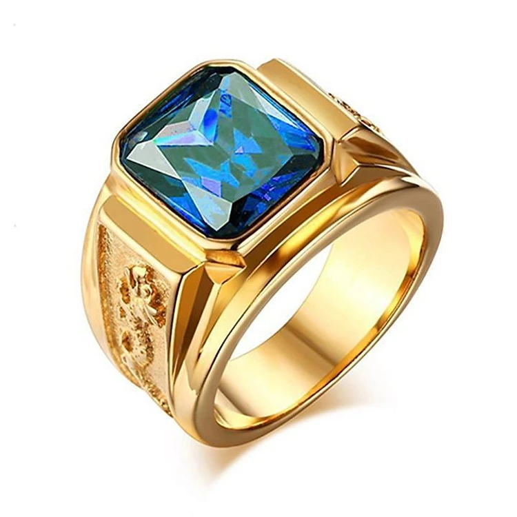 Nhẫn nam titan thời trang chạm rồng 2 bên trangsucpt đá xanh dương inox thép không gỉ PTNNA252