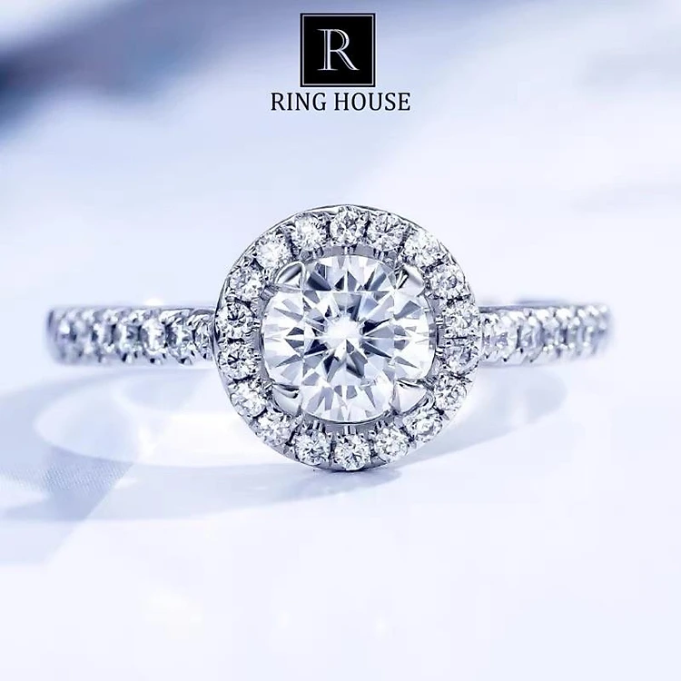 Nhẫn Nữ Bạc Ý 925 Cao Cấp Không Rỉ Gỉ Viên Tròn Đính Ngọc 8mm Bền Đẹp Cầu Hôn Quà Tặng Bạn Gái Ring House