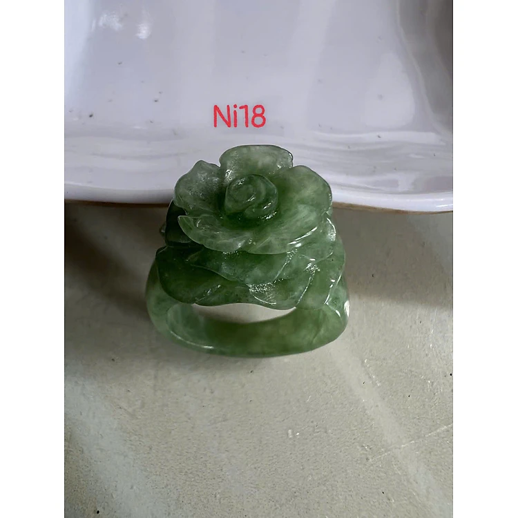 Nhẫn Nữ mới chạm Bông Hồng Nổi Đá Cẩm Thạch Tự Nhiên màu Xanh Rêu đẹp Ni 18mm đeo tay xinh ạ