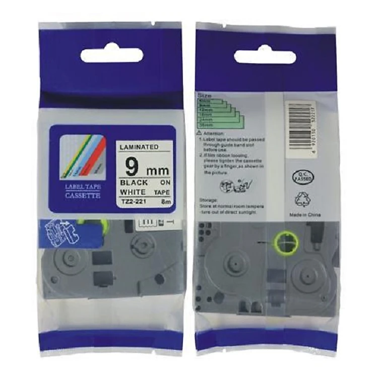 Nhãn TZ2-221 tiêu chuẩn - Chữ đen trên nền trắng 9mm - Hàng nhập khẩu