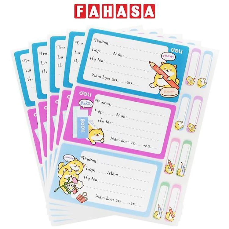 Nhãn Vở Học Sinh 3 Ô Kèm Sticker - Deli CA906A (15 Nhãn)