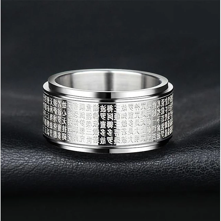 Nhẫn xoay Bát Nhã Tâm Kinh khắc chữ Vạn - Nhẫn phong thủy Hán ngữ may mắn bình an Ri99