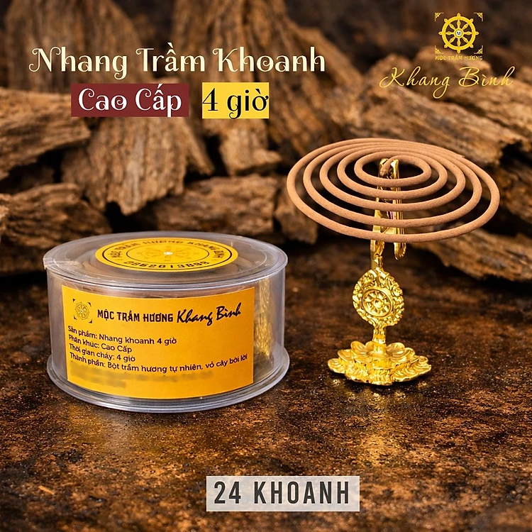 Nhang Khoanh Vòng Trầm Hương Cao Cấp 4 giờ ( 24 Khoanh ) - Mùi hương thanh diu , thơm ngọt nhẹ , Ít khói , phù hợp xông nhà , thiền tịnh - Mộc trầm hương Khang Bình
