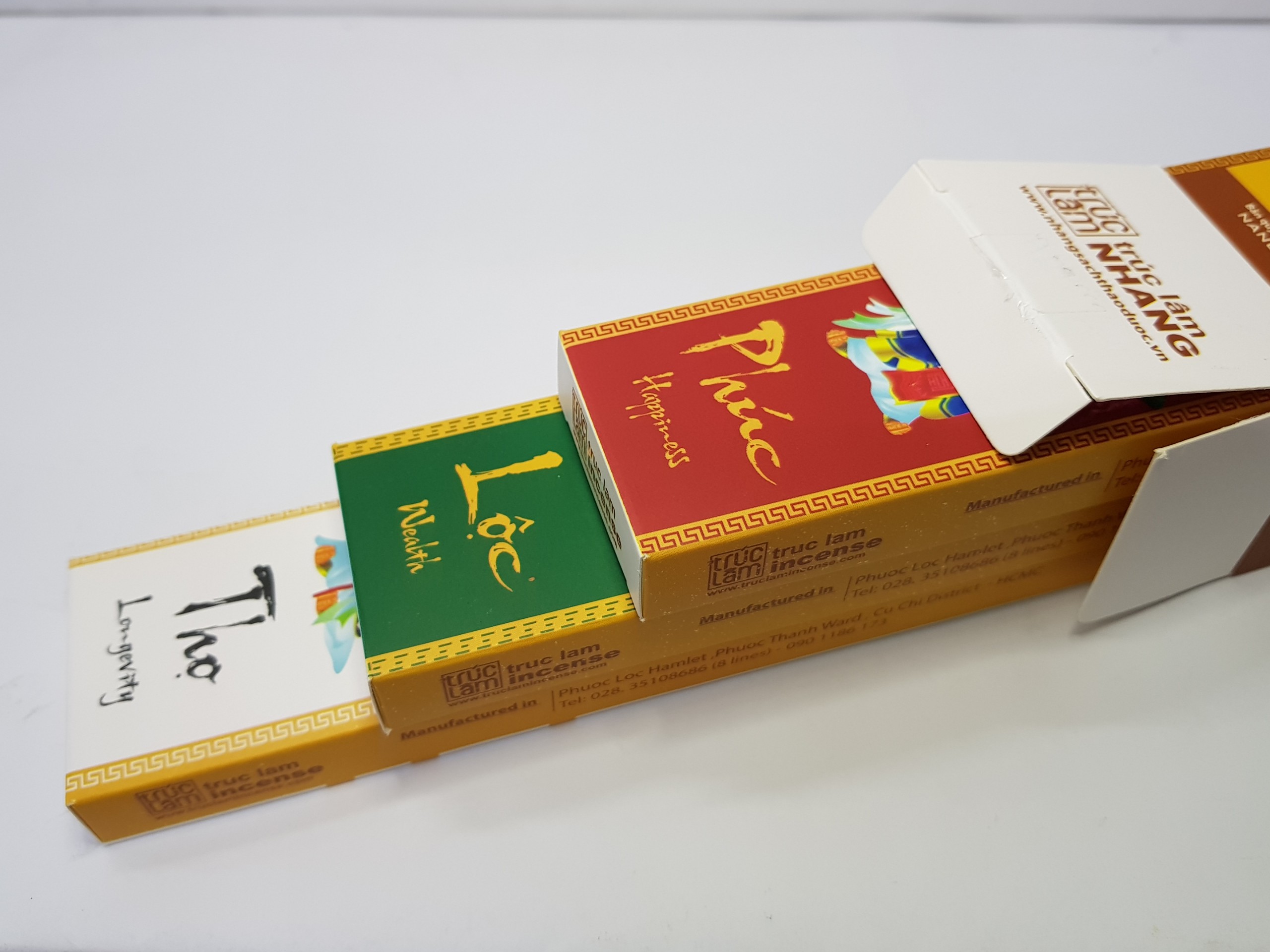 Số lượng:  45 cây trong mỗi hộp nhang Phúc, Lộc, Thọ. Tổng bộ là 135 cây.