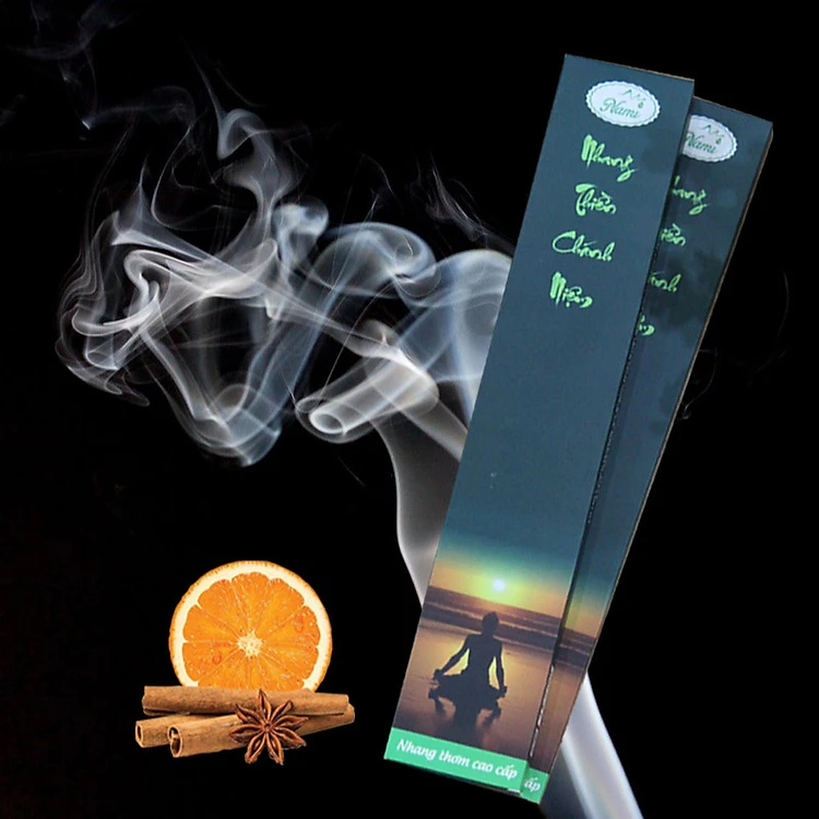- Loại Nhang : ba tấc (30cm), chân nhang mộc tự nhiên, đầu chân nhang chấm đỏ - đặc trưng của Nhang Chánh Niệm