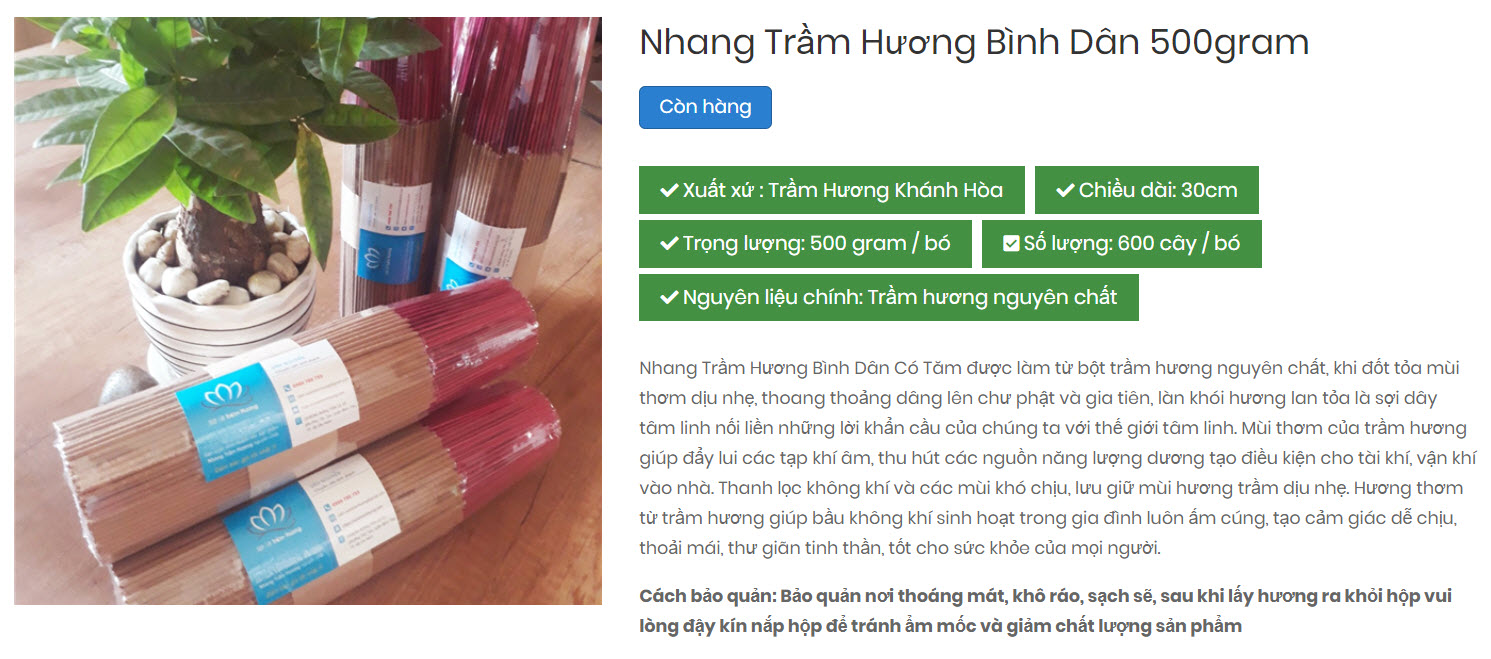 Nhang Trầm Hương Sạch Nguyên Chất, 100% tự nhiên, Ít khói, Mùi thơm thoang thoảng, dịu nhẹ mùi trầm, dài 30cm, bó 0,5kg (600 cây)