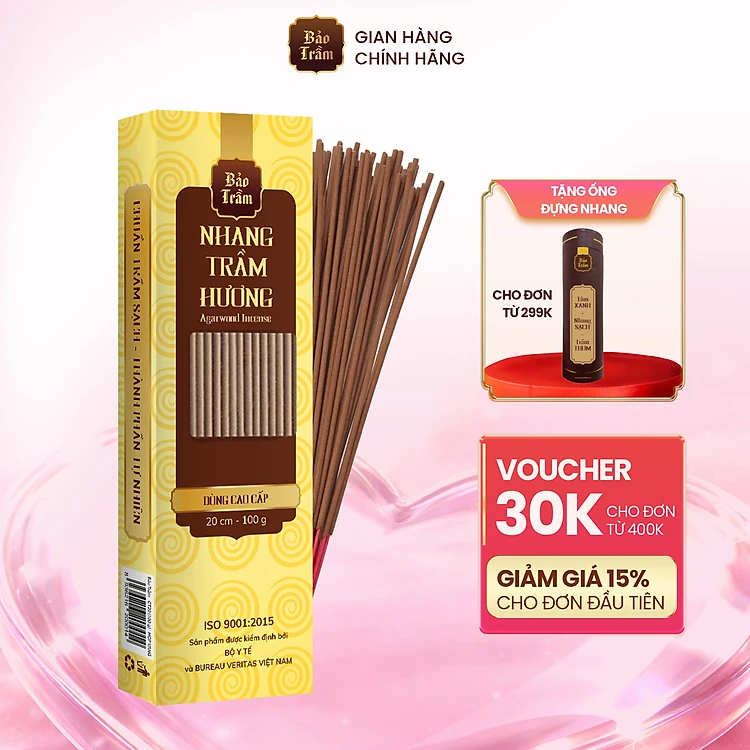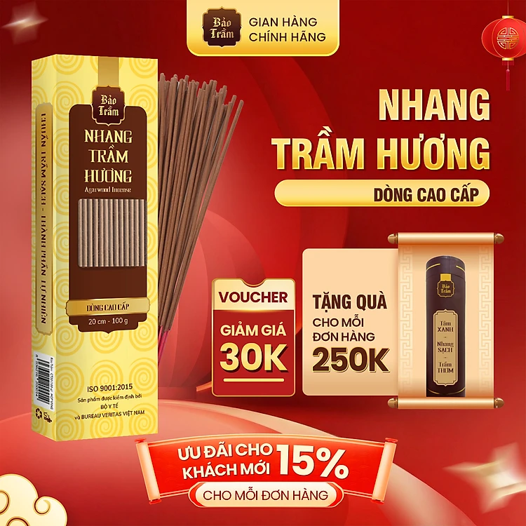 Nhang Trầm Hương 20cm Cao Cấp – Hộp Vàng 100g | Bảo Trầm – Thơm Tự Nhiên, Không Khói Gắt, An Toàn