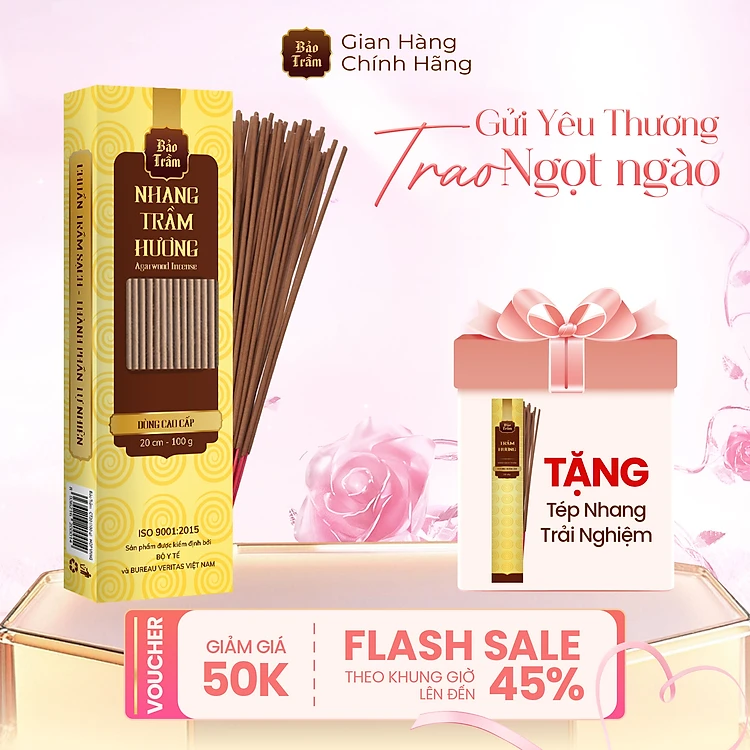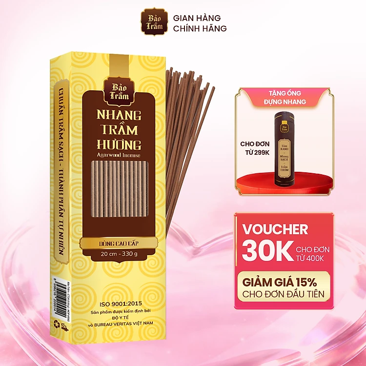 Nhang Trầm Hương 20cm Cao Cấp – Hộp Vàng 330g | Bảo Trầm – Thơm Sạch, Tăm Mộc An Toàn