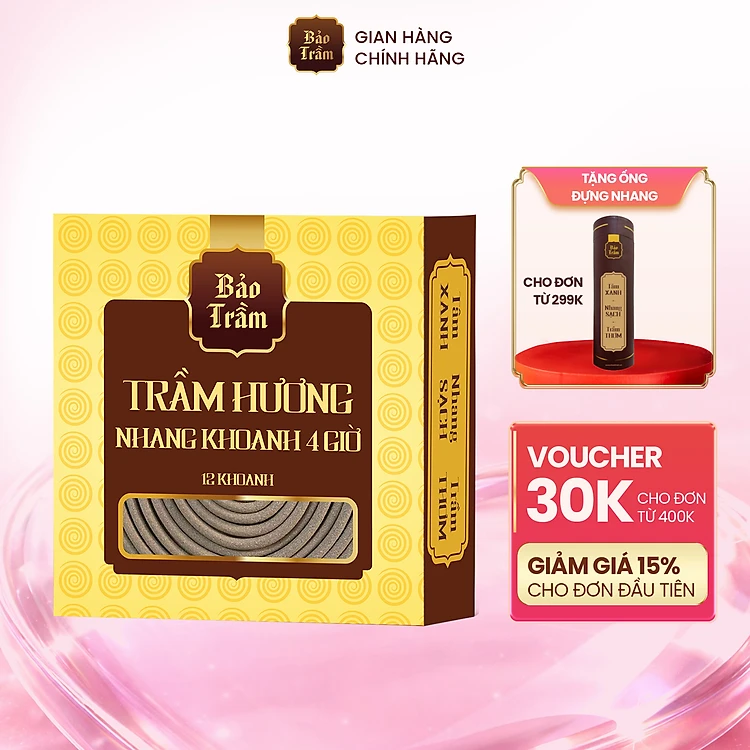Trầm Hương Khoanh 4 Giờ – Hộp Vàng 18 Miếng | Bảo Trầm | Thơm Sâu Tự Nhiên, Không Hóa Chất
