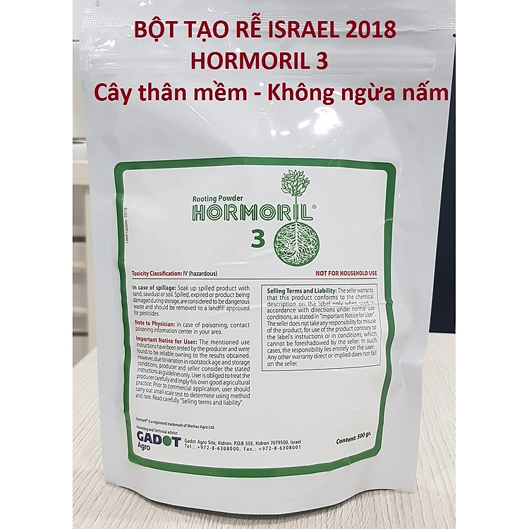 Nhập Khẩu Bột Kích Ra Rễ Israel cho cây thân Thảo, thân Mềm Hormoril 3 và bột kích ra rễ Hormoril T3 (with Fungicide) có thành phần ngăn ngừa nấm bệnh cho rễ con
