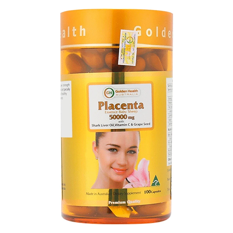 • Nhau Thai Cừu Golden Health GH 50.000Mg (100 Viên) - Trong mỗi viên nang nhau thai cừu có chứa: Tinh chất nhau thai cừu tươi nguyên chất (50000mg), Vitis Vinifera hạt giống trích xuất equiv. để khô (1200mg), Acid ascorbic (vitamin C, 50mg), Dầu gan cá mập (50mg).