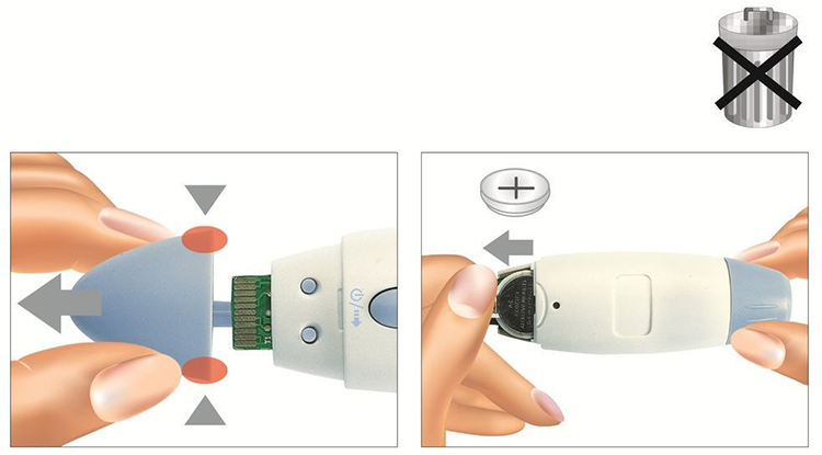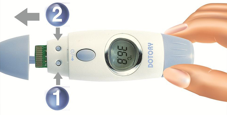 - Cách thay pin: Nhiệt kế có một pin lithium đã được lắp đặt sẵn khi sản xuất. Khi biểu tượng hết pin được hiển thị trên màn hình LCD, hãy thay pin cho máy theo các bước sau: