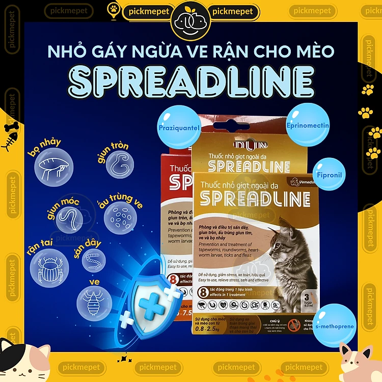 Nhỏ gáy SPREADLINE ngừa ve rận, bọ chét cho cho Mèo Vemedim