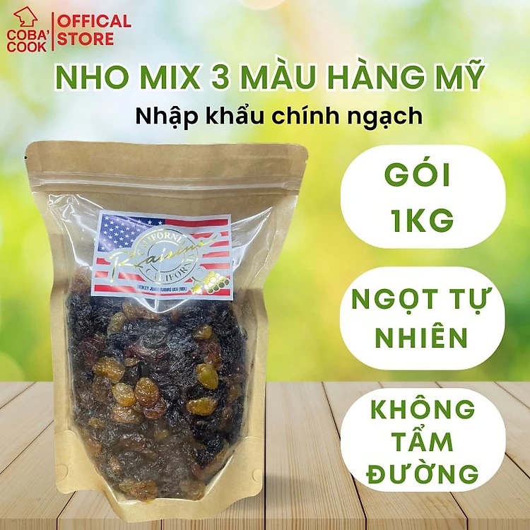 Nho Khô Không Đường 3 Màu Hàng Mỹ Ngọt Tự Nhiên