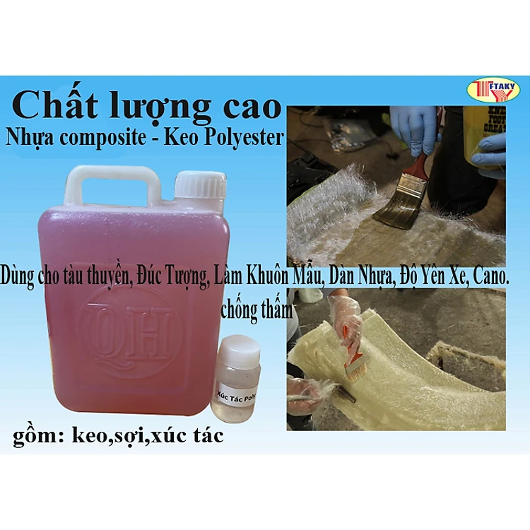 Nhựa Composite - Keo Polyester resin FTAKY và sợi thủy tinh, Chổi, dùng đúc tượng, làm khuôn mẫu, dàn nhựa, độ yên xe, cano.