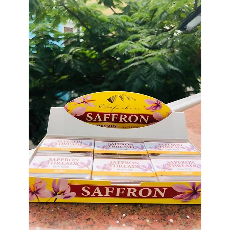 Ngược lại, saffron thật cần đến 10 phút để ra màu đỏ cam, không lẫn màu trắng hay vàng và nước rất thơm. Sợi saffron khi cầm lên vò nhẹ thấy có độ dai nhất định và chỉ bị đứt đoạn chứ không tan.