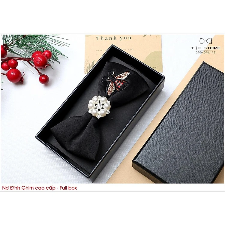 Nơ Chú Rể Cao Cấp, Nơ Đính Phụ Kiện ghim đính ngọc - Full Box