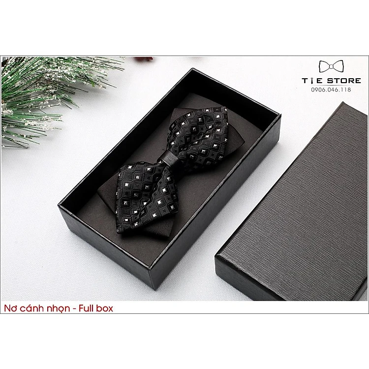 Nơ Đeo Cổ Nam cánh nhọn - Nơ chú rể, MC màu đen chấm bi , tặng kèm hộp