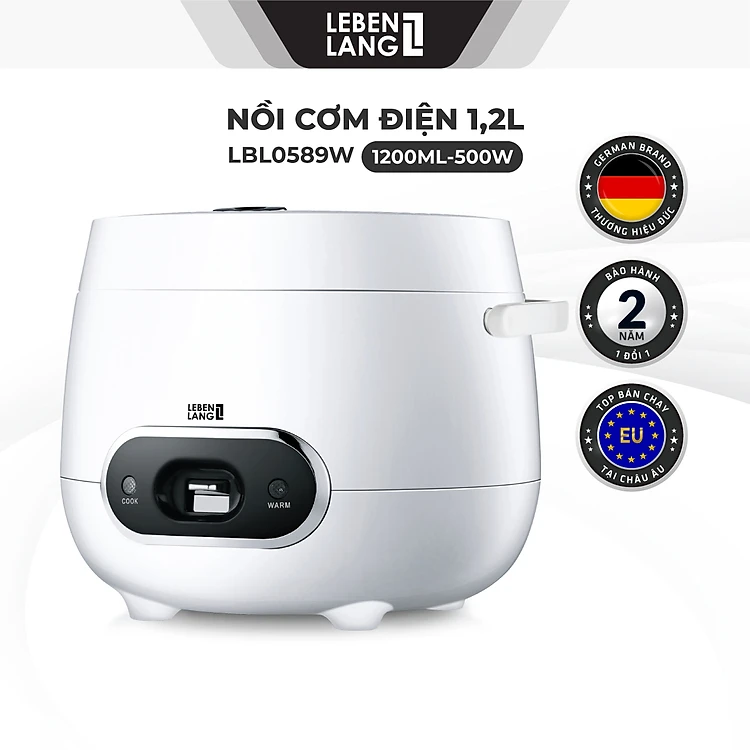 Nồi cơm điện Lebenlang LBL0589 dung tích 1200ml, công suất 500W, thiết kế đơn giản hiện đại - hàng chính hãng