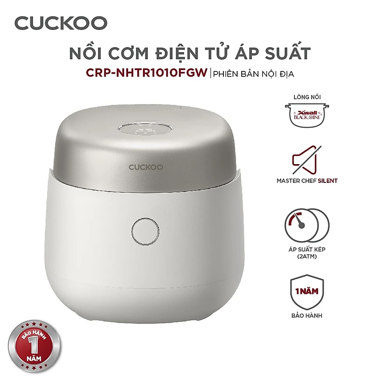 Nồi cơm điện áp suất kép cao tần Cuckoo 1.8L CRP-NHTR1010FGW- công nghệ áp suất xi lanh hiện đại, giúp giảm tiếng ồn- Lòng nồi phủ men Xwall độc quyền- Bảo hành 2 năm - Hàng chính hãng Cuckoovina