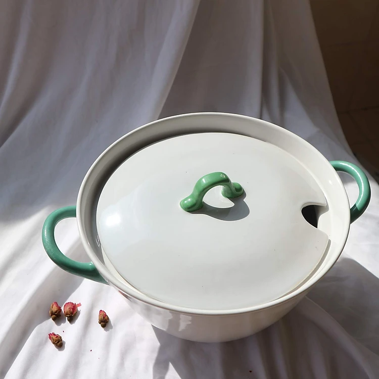Nồi Sứ Quai Cầm Xanh Lá Cây - Gốm Sứ Nhật - Cao cấp Đẹp Mắt Tiện Dụng - Màu Trắng - Kích cỡ Lớn