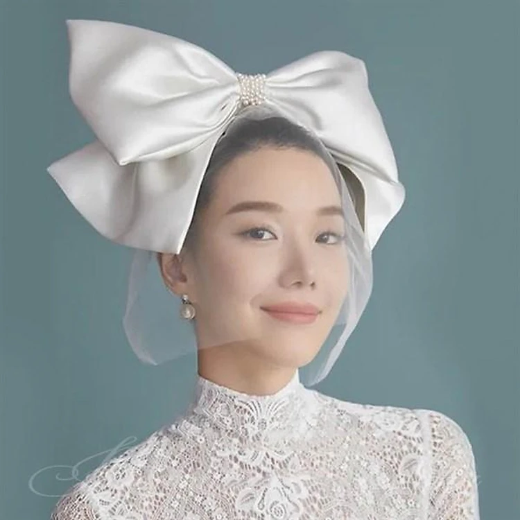 Nơ phi bóng lớn kèm voan ngắn cài tóc cô dâu sp220679
