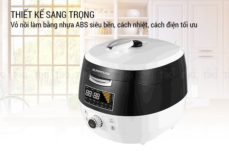 Nồi Áp Suất Đa Năng Sunhouse SHD1858BW sở hữu thiết kế nắp gài hiện đại phối tông màu trắng - đen sang trọng tạo điểm nhấn nổi bật cho nội thật nhà bếp. Vỏ nồi làm bằng nhựa ABS siêu bền, cách nhiệt, cách điện tối ưu; hạn chế tối đa trường hợp nứt, vỡ, biến dạng… do va đập. Nắp nồi siêu bền, cách nhiệt, giữ an toàn cho người sử dụng. Bên cạnh đó, màn hình hiển thị thông số cùng phím điều khiển điện tử giúp dễ dàng sử dụng.