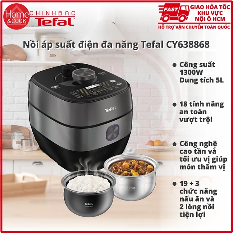 Nồi áp suất điện đa năng 5L cao tần Tefal CY638868, bảo hành 2 năm, hàng chính hãng