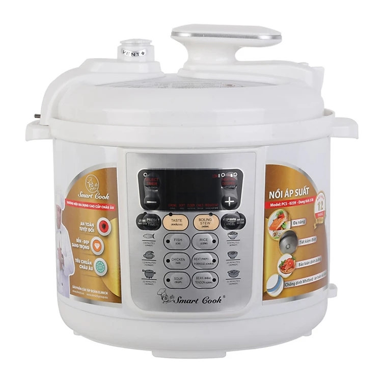 Nồi Áp Suất SMARTCOOK PCS-0239-5L với màu trắng tinh tế cùng nhiều chức năng được lắp đặt sẵn, giúp bạn thật sự thoải mái và tiện dụng với sản phẩm. Lòng nồi với hợp kim nhôm dày dặn được phủ lớp chống dính hạn chế sự bám dính gây cháy xén thức ăn cùng thân nồi được sơn tĩnh điện hạn chế sự cố rò rỉ điện và có khả năng chịu lực va đập tốt giúp bạn yên tâm hơn khi sử dụng. Với nồi áp suất, bạn sẽ tiết kiệm được nhiều thời gian cho cuộc sống và tiết kiệm được tối đa điện năng tiêu thụ.