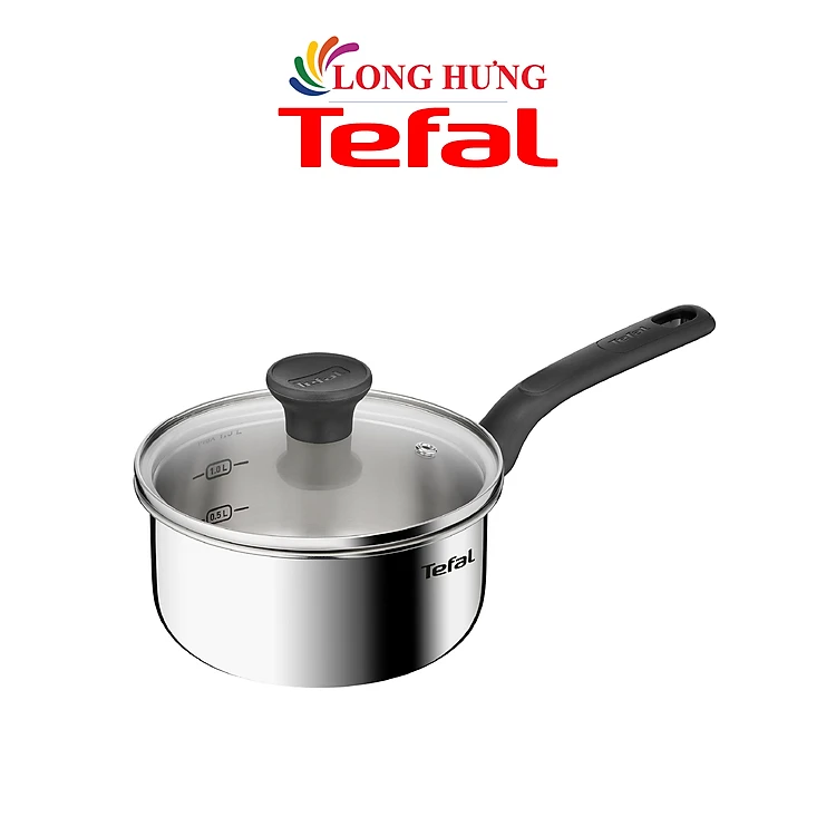 Nồi cán dài/quánh Inox liền khối có nắp Tefal Starter 16cm E3252295/18cm E3252395 - Hàng chính hãng