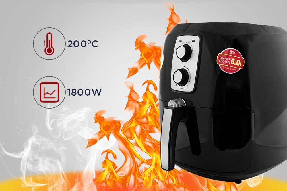 Nhiệt độ lên tới 200 độ C, công suất 1800W giúp thời gian nấu nướng nhanh hơn bao giờ hết. Với lượng nhiệt cao như thế chắc chắn sẽ giúp thức ăn chín cực kỳ nhanh, cộng với đó là công suất lớn sẽ kết hợp lại giúp bạn tiết kiệm cả khổi thời gian để làm việc khác.