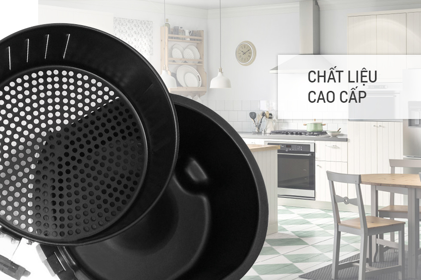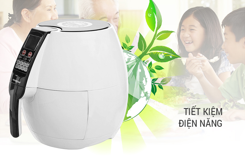 Sử dụng công nghệ Rapid Air tận dụng tối đa không khí đối lưu trong và ngoài lòng nồi với tốc độ cao để chiên nướng thực phẩm nhanh gấp 2 lần so với loại thông thường. Chiên nướng thực phẩm không cần dầu mỡ, giảm đến 80% lượng mỡ dư thừa an toàn không lo béo phì, không tăng huyết áp, hay những bệnh tật do ăn nhiều dầu mỡ.