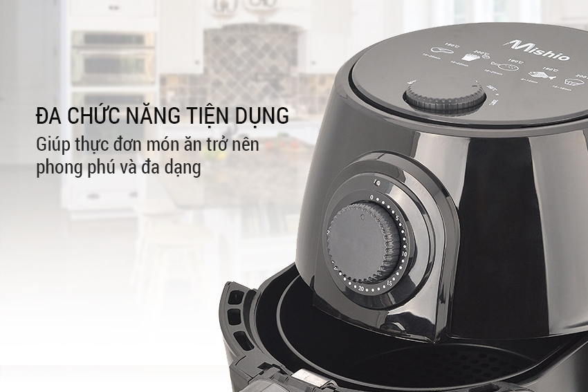 Với nồi chiên không dầu Mishio chính hãng, chỉ vài thao tác đơn giản và chờ đợi trong vòng 12 đến 18 phút là bạn đã có ngay món ăn thơm ngon, nóng hổi. Bạn còn có thể chế biến đa dạng các loại thực phẩm như những món chiên rán: chả giò, gà chiên, khoai tây chiên, nem chua rán, tôm lăn bột, mực chiên xù,… Ngoài ra, nồi có thể nướng bánh sandwich, bánh quy, thực phẩm sấy khô như mít sấy, hoa quả sấy, cơm dừa sấy, lạc rang, vừng rang, hạt dẻ nướng, bỏng ngô,…